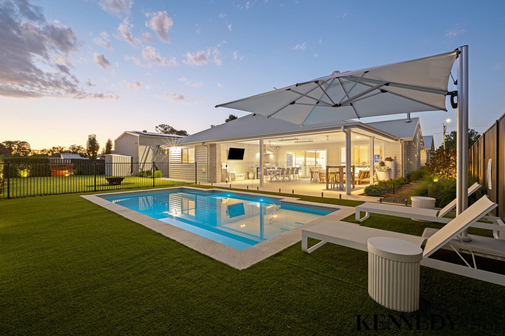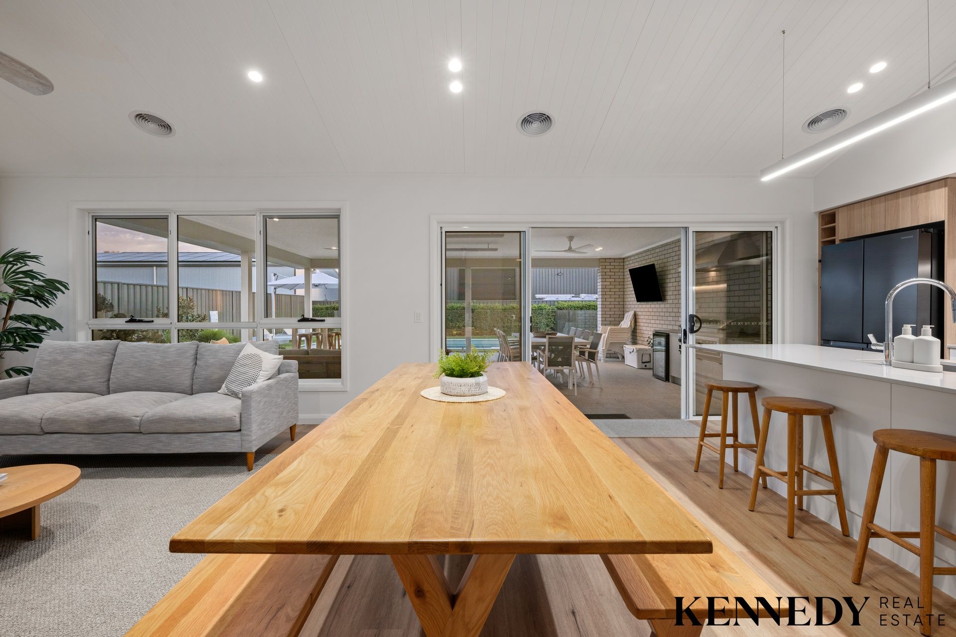 The heart of the home is the beautifully designed kitchen and dining area, perfectly positioned to overlook the alfresco space and sparkling swimming pool, creating seamless indoor, outdoor flow. All bedrooms are generously proportioned, offering space and privacy for the whole family.