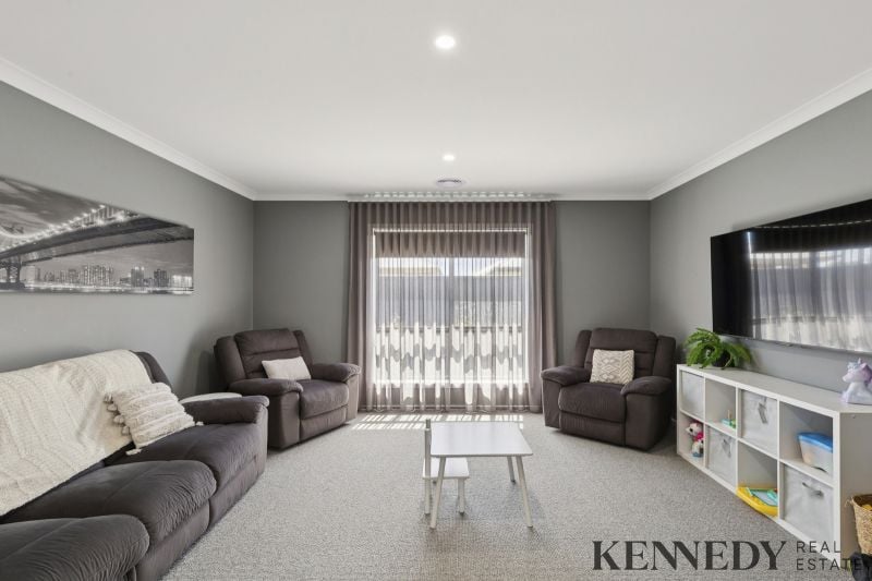 At the heart of the home is the show-stopping kitchen, complete with an incredible butler’s pantry, seamlessly flowing into the open-plan living and lounge areas. A separate family room provides added flexibility for relaxed living or entertaining.