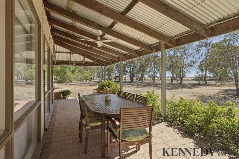 Located 10 minutes from Yarrawonga this well-maintained three-bedroom home is set on approximately 25 acres.
