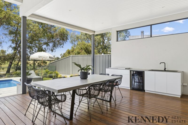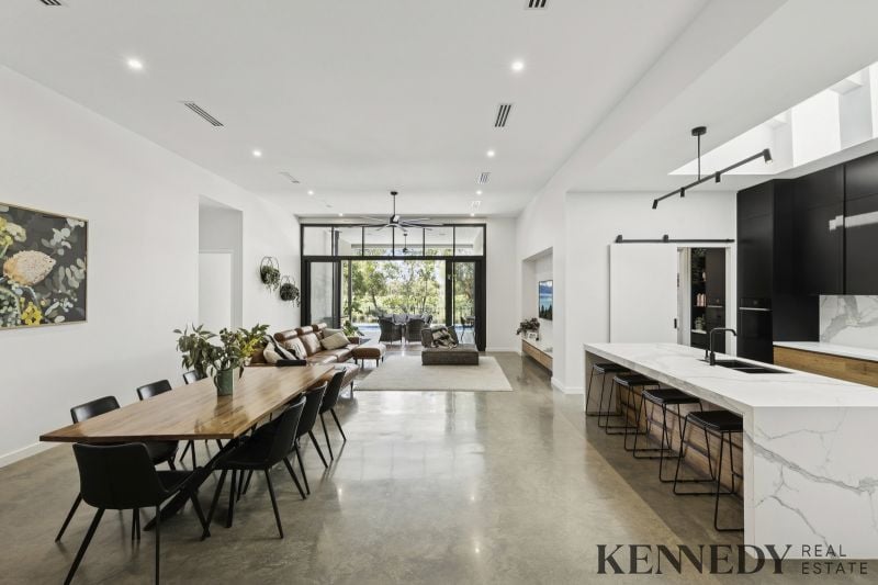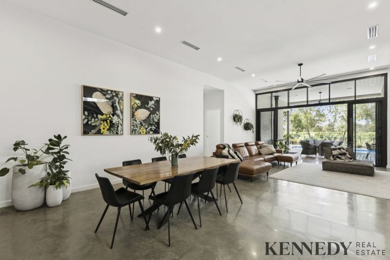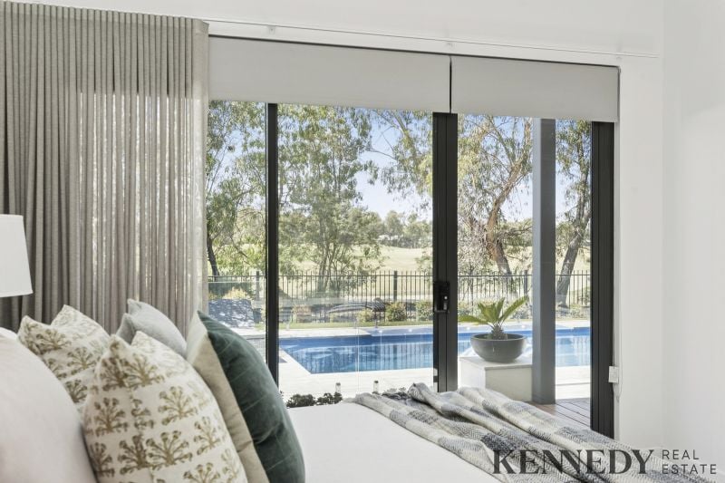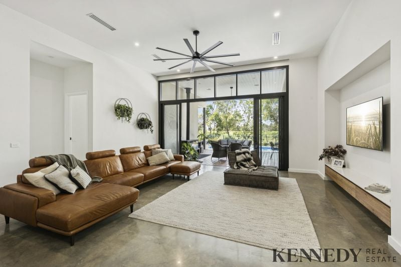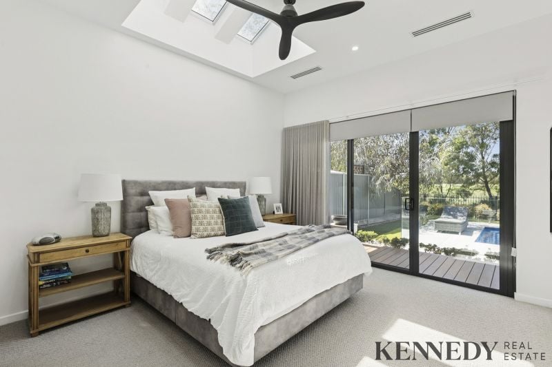 Never before have I seen a home with such impressively high ceilings, this residence stands as a masterpiece of contemporary design and superior specifications. Equipped with velux skylights and remote-controlled blinds, it features oversized bedrooms, a dedicated office space, and a gourmet kitchen optimized for large-scale entertaining, complete with a butler’s pantry. The inground pool is enhanced by a heat pump and 10kW solar system, complemented by floor heating and refrigerated ducted cooling throughout. Situated on a substantial block overlooking the golf course, surrounded by established trees for privacy and low-maintenance appeal, this high-level build represents one of the finest examples in its class. Embrace the ultimate lifestyle choice: live and enjoy the vibrant township, with The Sebel, lakefront paths, and Lake Mulwala all within walking distance, opposite a serene park for effortless recreation. A great opportunity awaits.