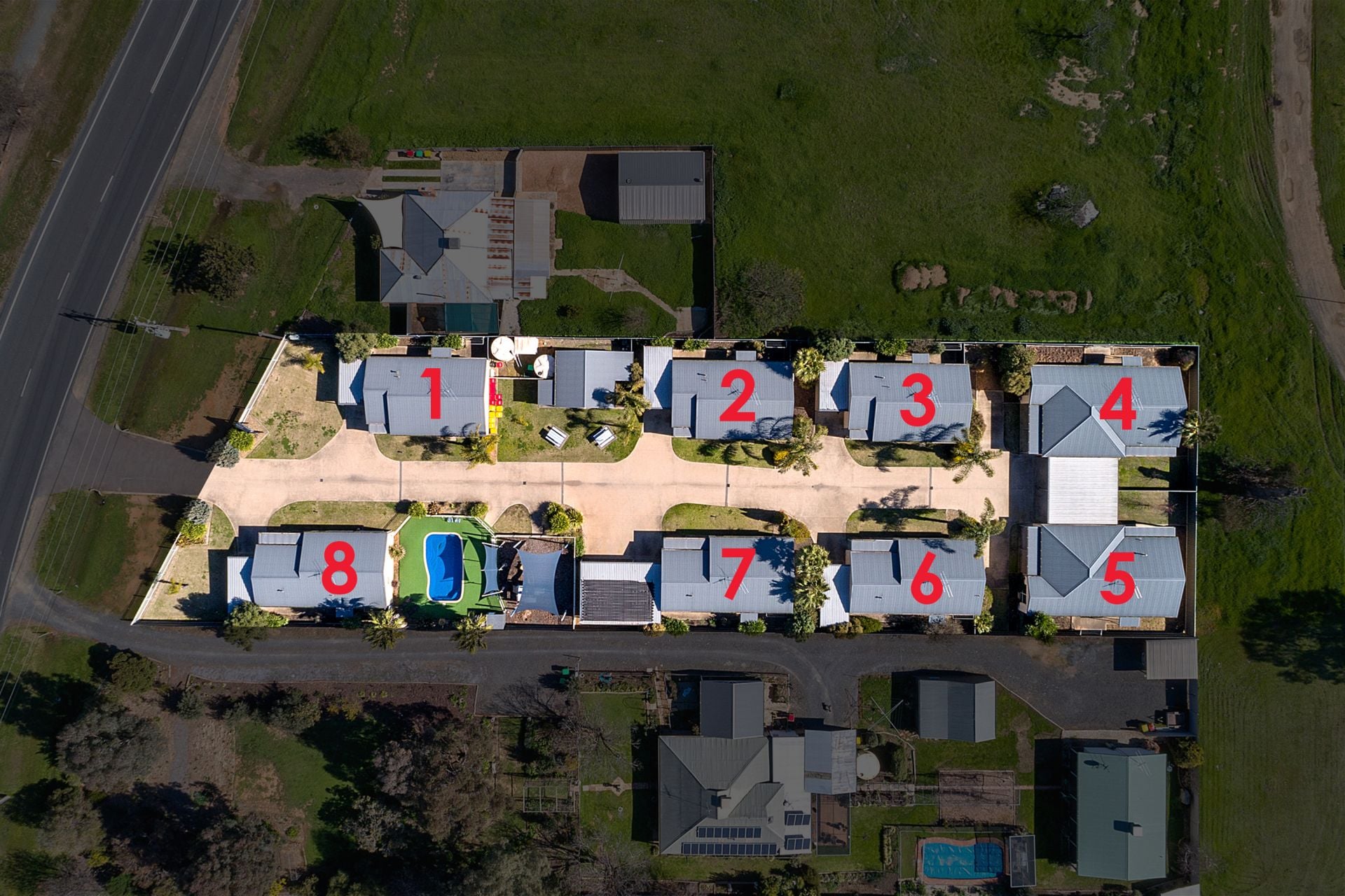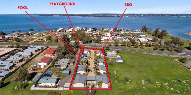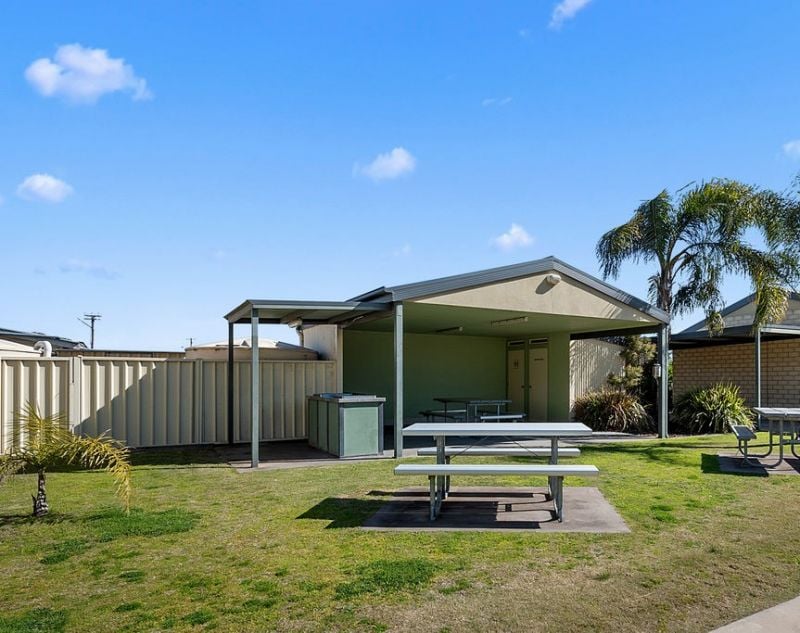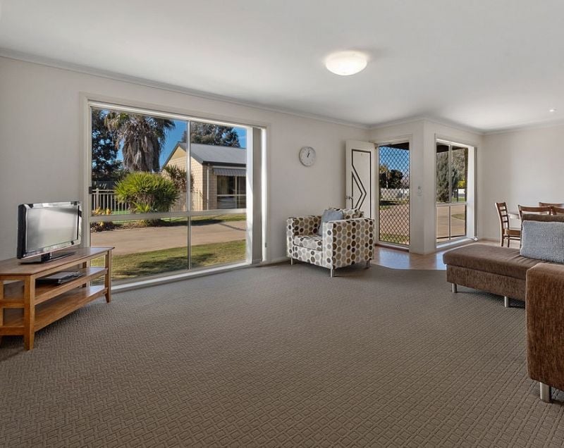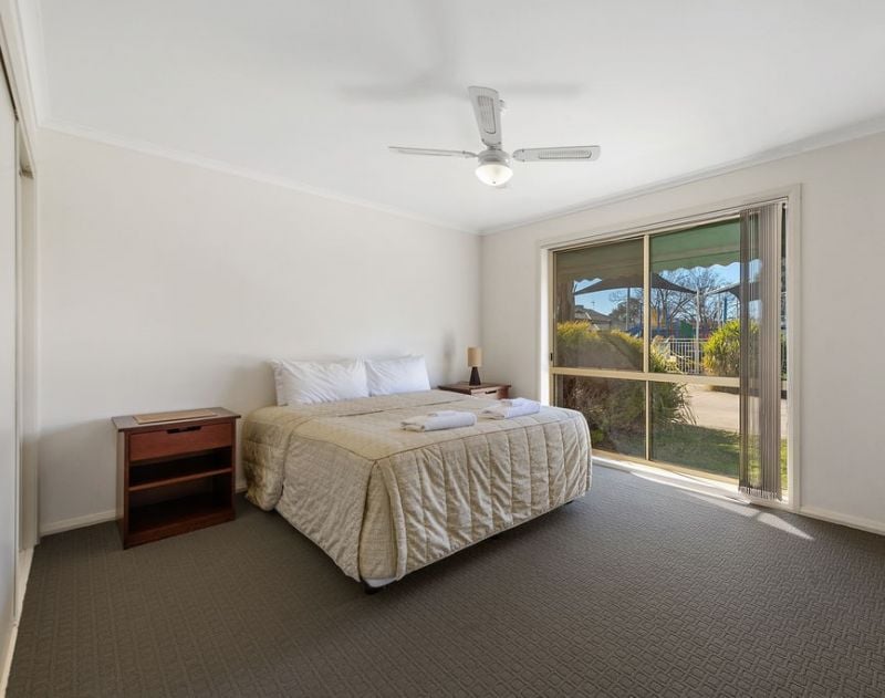 Located 2.5km from Mulwala’s town centre. The complex offers communal BBQ area that opens onto grassed dining area, playground and swimming pool.
